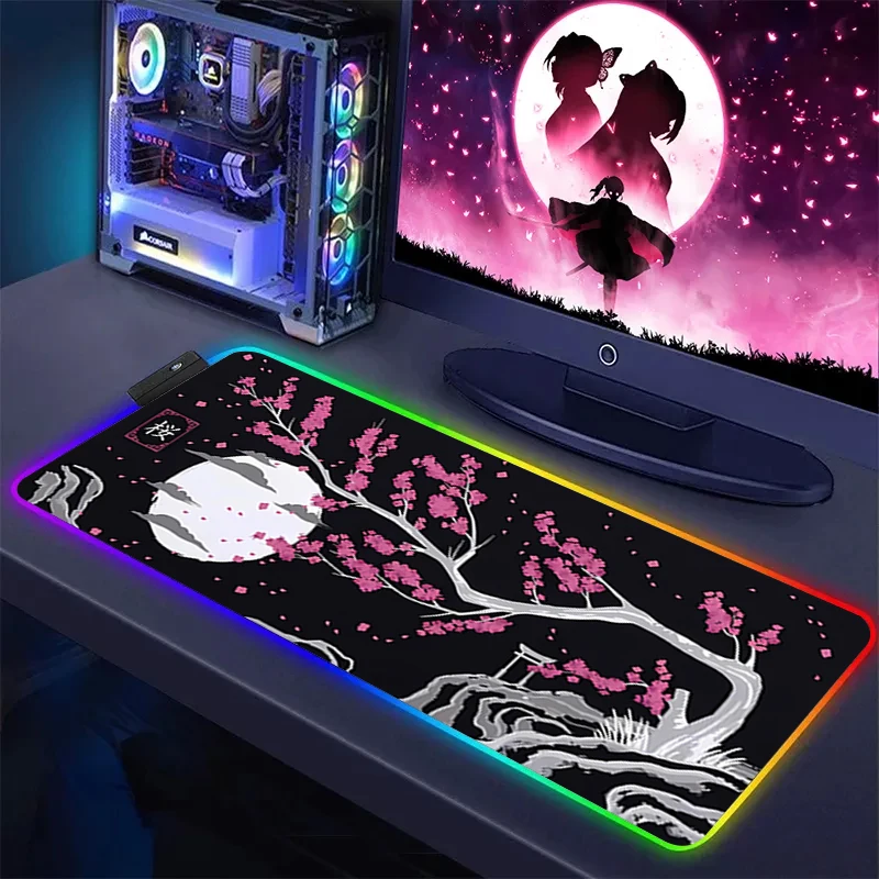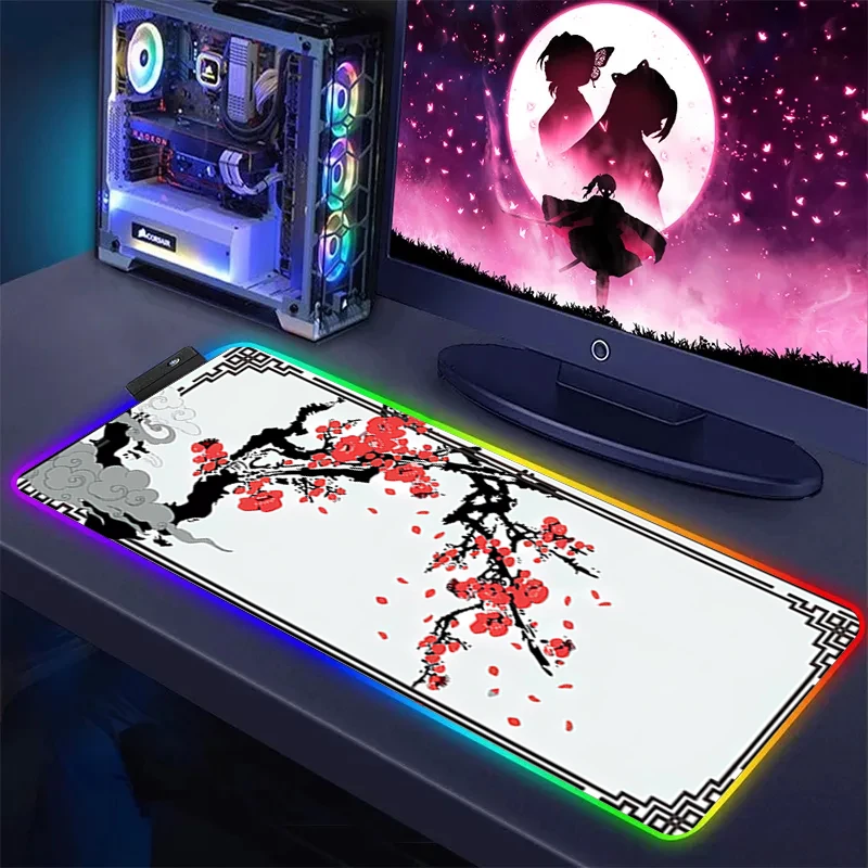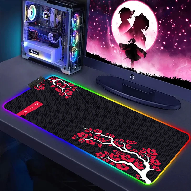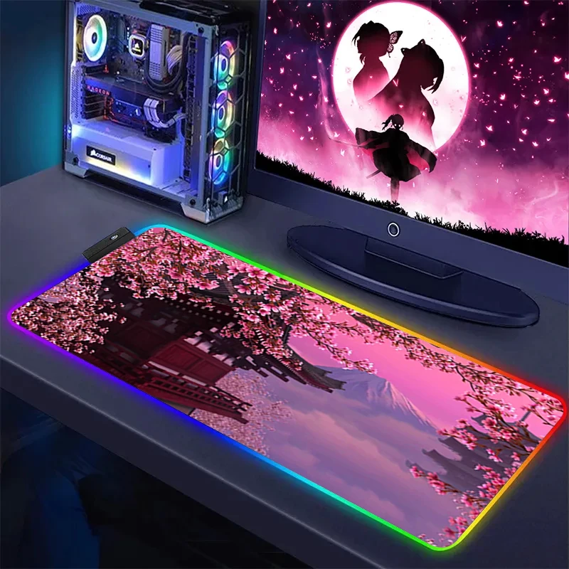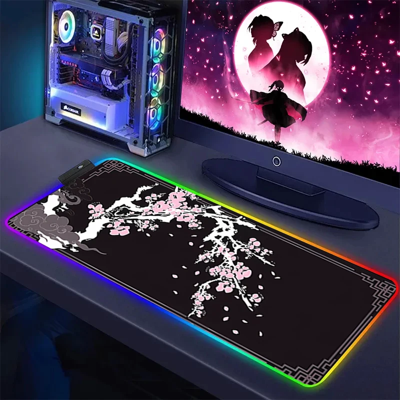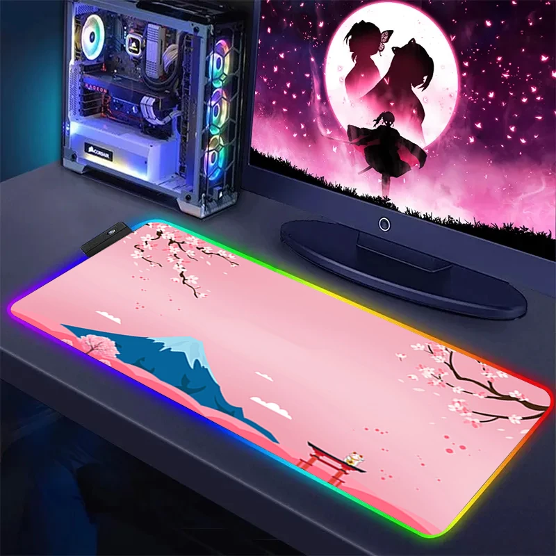 XXL Pink Sakura Large Mouse Pad RGB Mousepad LED Glow Computer Gamer Masuepad Keyboard PC Desk Mat Office Accessories Table Msts - Купить с бесплатной доставкой