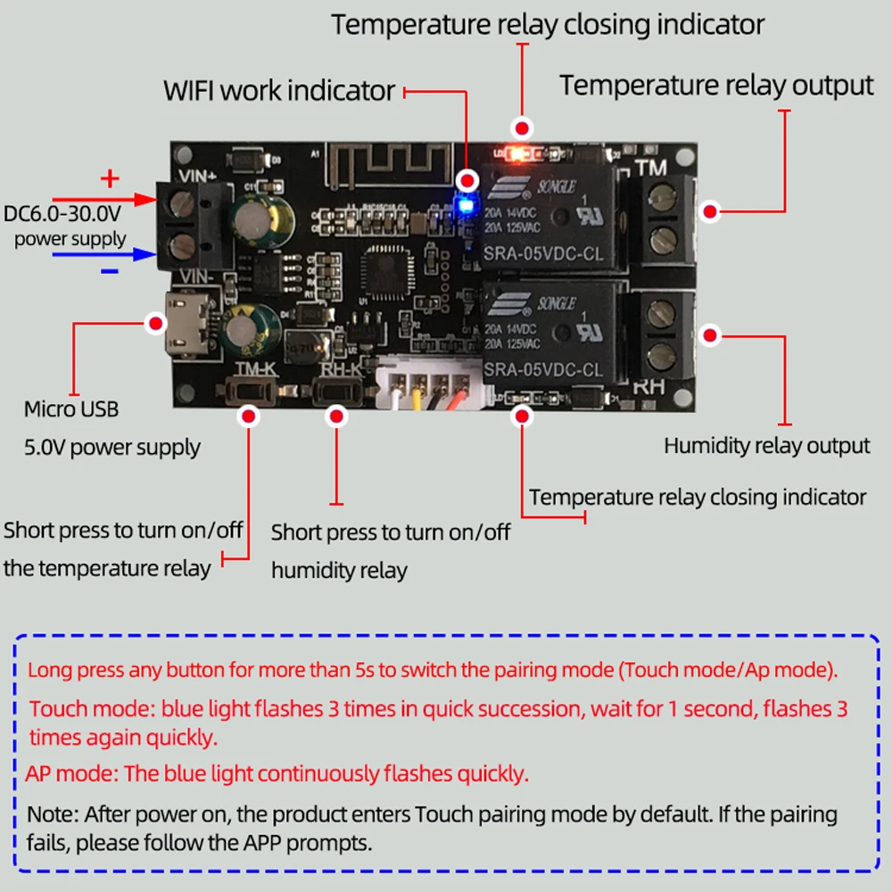XY-WFWT Temperature and Humidity Remote Controller WIFI Relay Module Dual Output Automatic Constant Temperature and Humidity - Купить с бесплатной доставкой