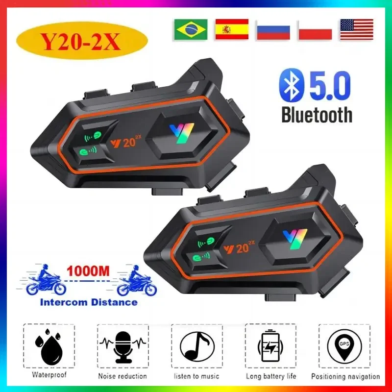 Y202X Motorcycle Helmet Bluetooth Intercom Headset Waterproof and Noise Reduction Supports 2 Riders 1000M Intercom Communication - Купить с бесплатной доставкой