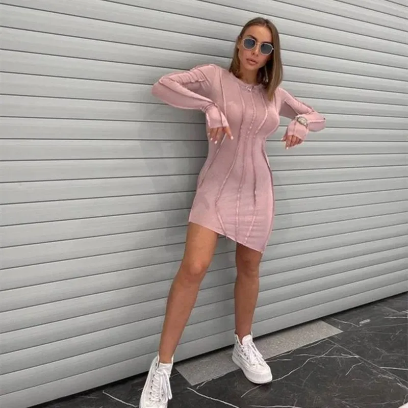 Summer Hollow Out Sexy Dress For Women Fashion Fishing Net Design Dress Vestidos Casual Slim Long Sleeve Party Office Lady Dress