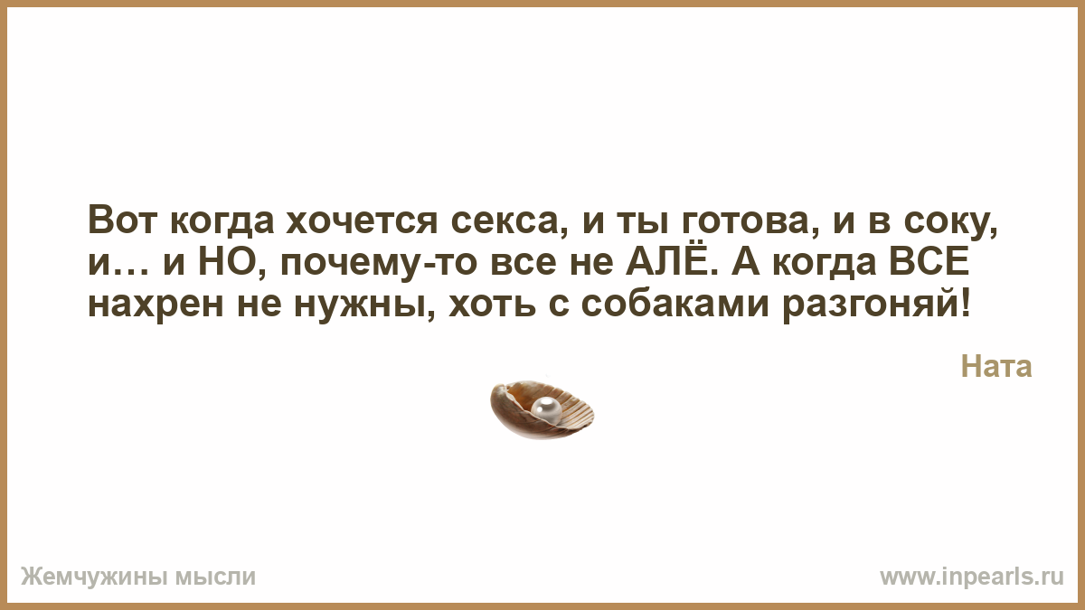 Секс для меня это супружеский долг. Мне его не хочется. Ни с мужем, ни с соседом, ни с Бредом Питтом каким-нибудь, вообще ни с кем.