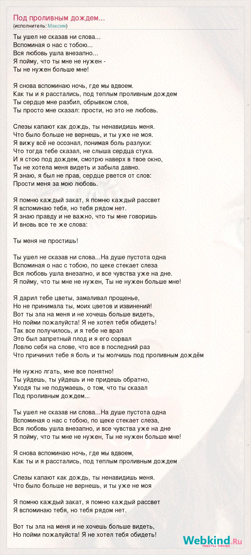 Я не хотел тебя обидеть, ты же знаешь . Я не хотел тебя обидеть, ты же знаешь . Все получилось как-то так, само собой, Прости меня, ведь ты же понимаешь, Что я хороший и совсем не злой .