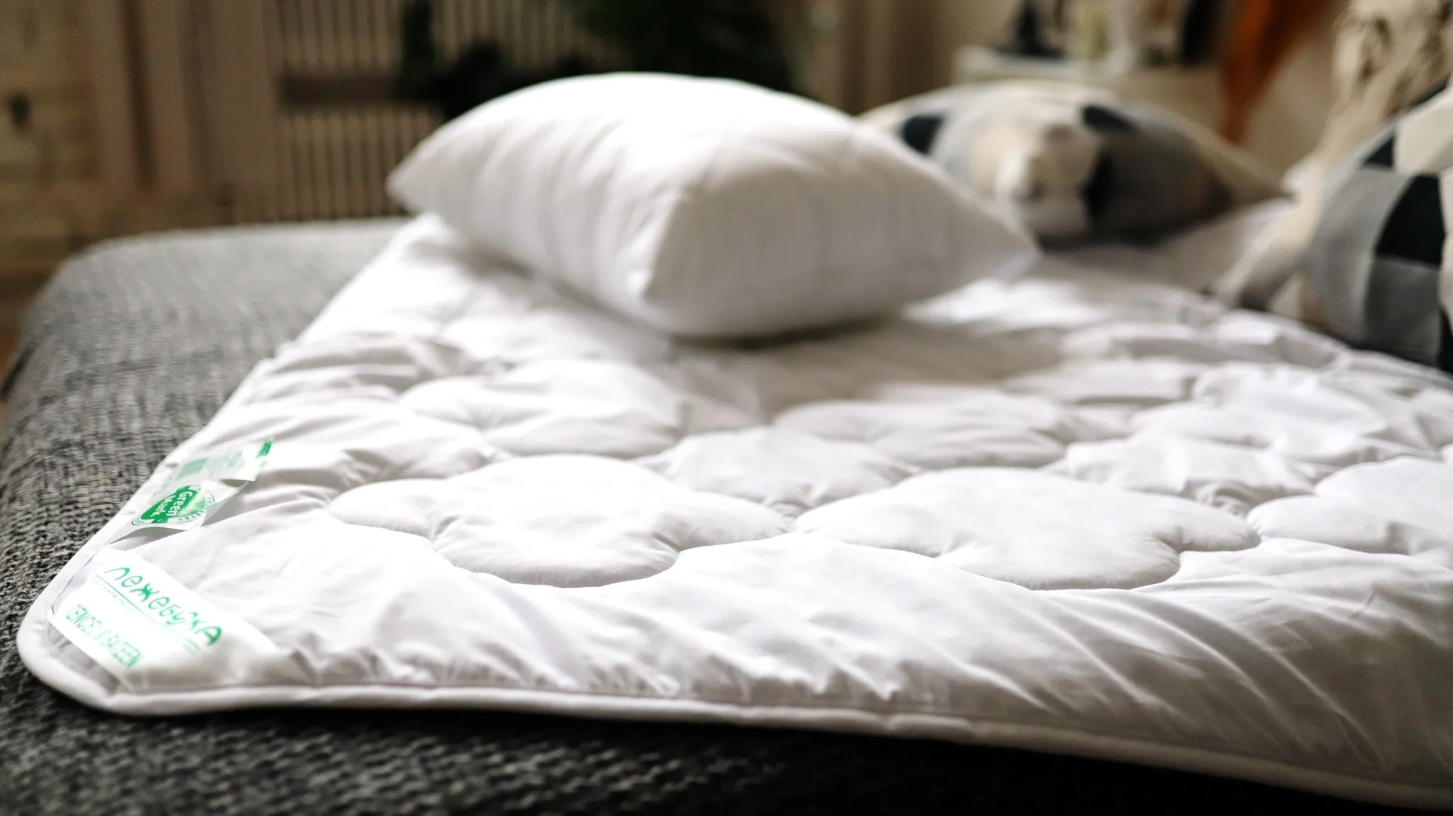 Мы с женой легли спать в свою кровать в спальне, сестра жены в зале .