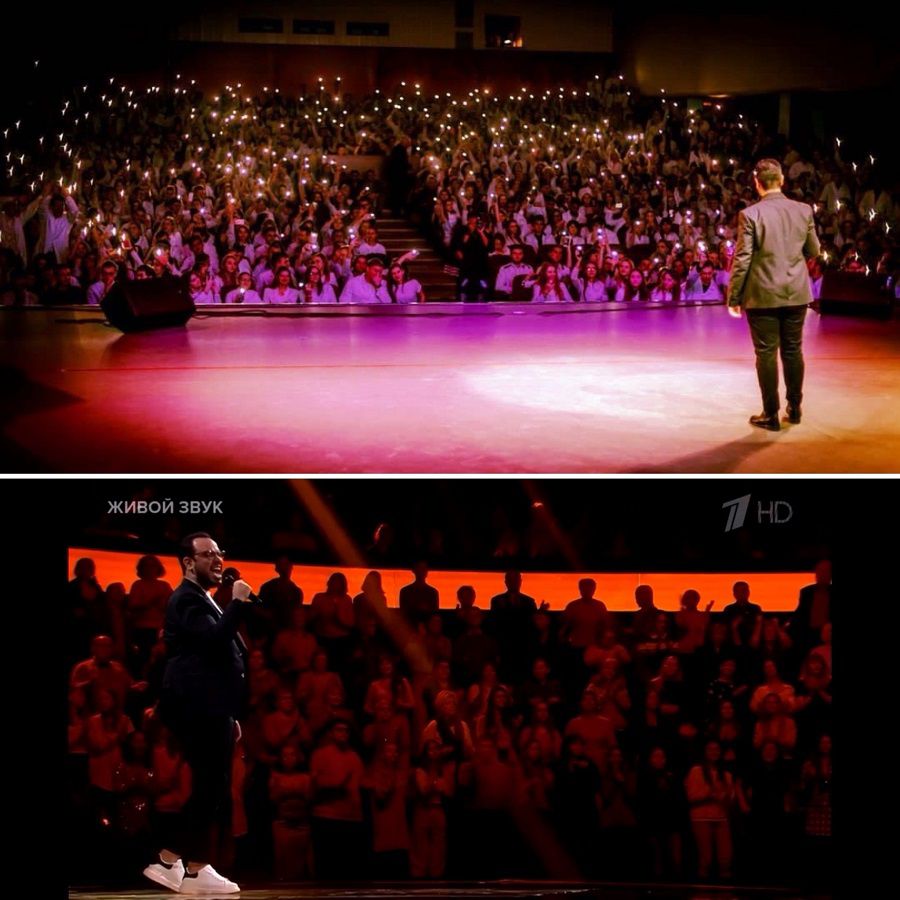 Недавно наш проректор по воспитательной работе Мария Викторовна Гордова после выступления на «Голосе» отправила мне фотографию, из-за которой я был в слезах. Это мое второе выступление в Рязани – Дворец молодежи, вечер посвящения в студенты для первокурсников, хотя присутствуют и студенты других курсов. Меня тогда никто не знал – я просто вышел и пел на арабском языке. И рядом – мое выступление на Первом канале. Мне это сравнение очень понравилось: уже тогда студенты бурно реагировали, и выбранная мной песня их тронула.