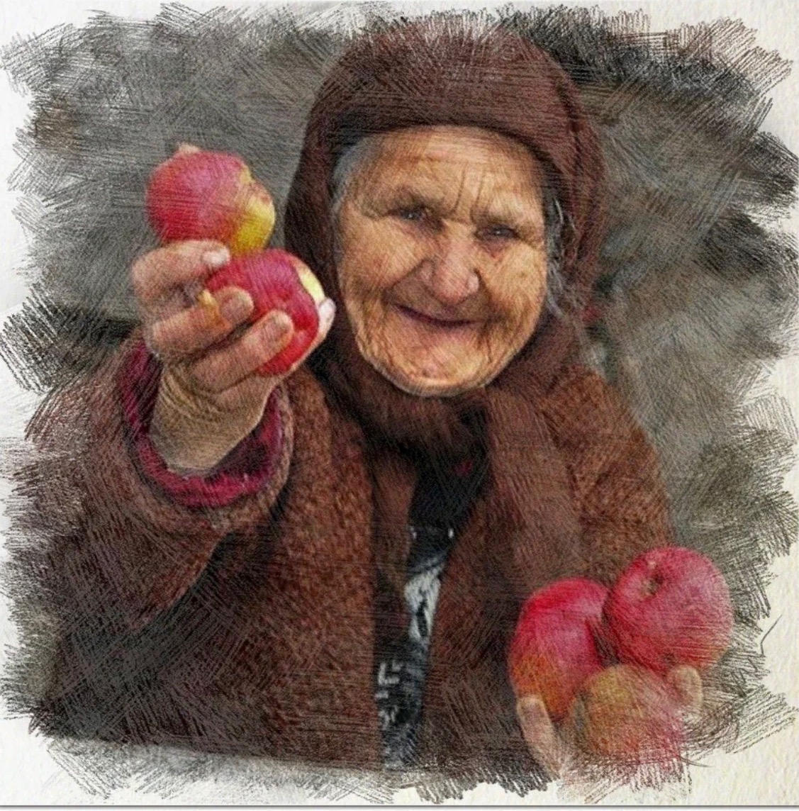 Светлана Степановна тряслась в холодной электричке и тихонько вздыхала - чем-то зацепил её этот вчерашний парень - может сына Митю напомнил… Давным-давно Митенька погиб при исполнении. Пожарным был. Даже к награде представлен. Вот так и получается, что награда сына у нее есть, а больше никого и нет. Митька даже жениться не успел. Пока муж был жив держалась она – кому пенять если бог так распорядился. Только ушел и Феденька, почитай уже два года как. И свет для Светланы Степановны померк. Зачем ей это жизнь, если осталась совсем одна? Купивший яблоки молодой человек всколыхнул ее душу, поговорил, не прошел мимо. Да так хорошо поговорил, что сон к бабушке не шел до самого утра, все вспоминала его глаза с затаенной внутри болью. Она эту боль сердцем материнским сразу почувствовала, потому и позвала прийти вновь, гостинцев пообещала.