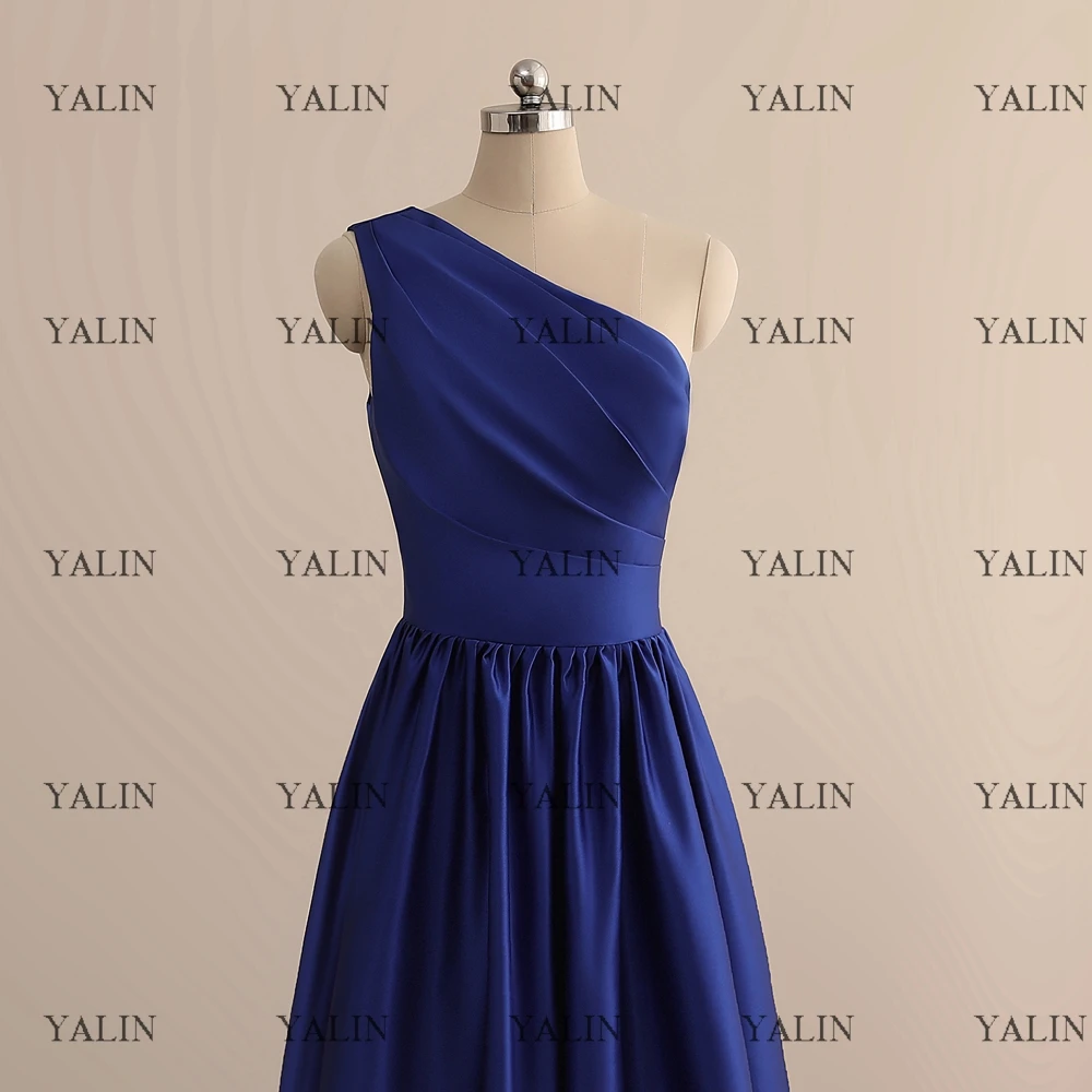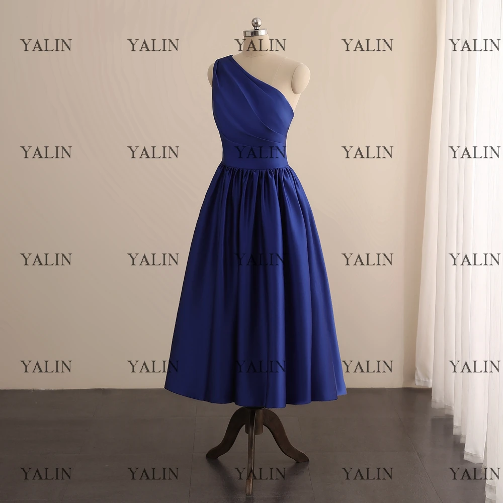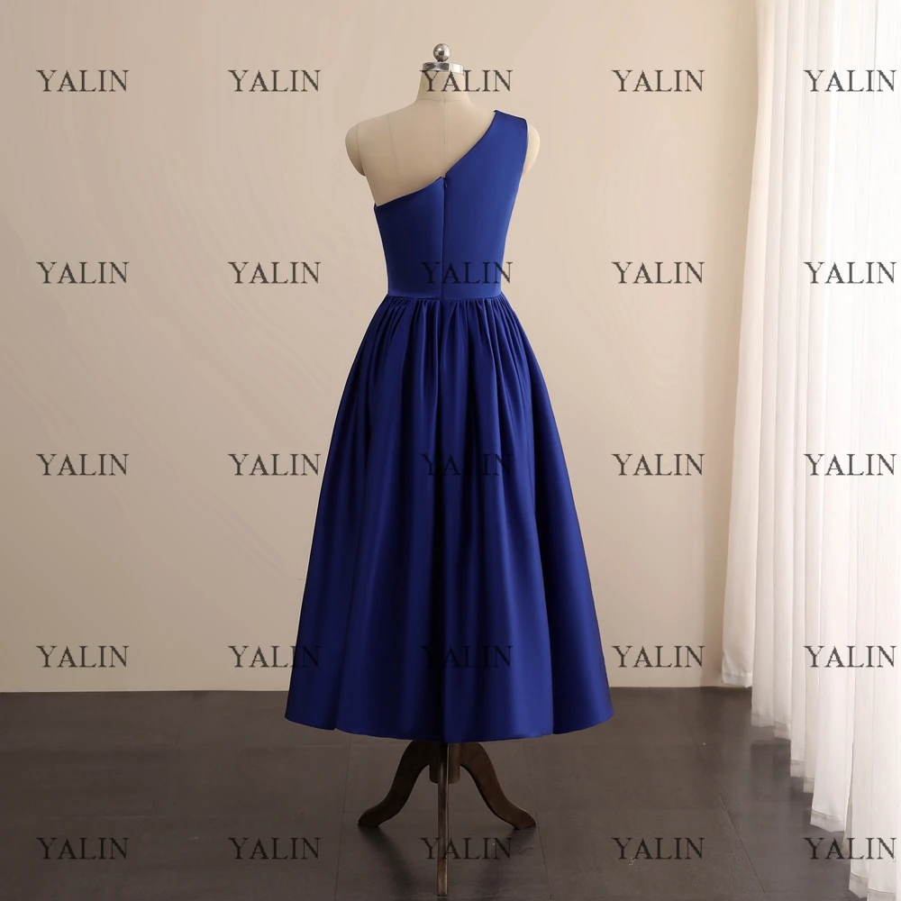 "YALIN Formal One Shoulder Short Prom Dresses Royal Blue Pleated Homecoming Dress Tea-Length Backless A-Line Party Dress Custom" * Buy Now Just For 69$