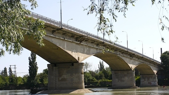 795-метровый Яблоновский мост в Краснодаре был сооружён в 1952 году на месте деревянного пешеходного, построенного в 1926 году и взорванного во время Великой Отечественной войны .