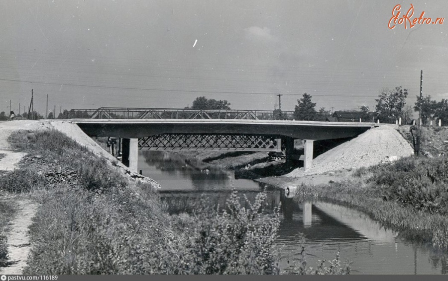 Фото 1970-х гг . Яблоновский мост . Утраченный объект . Мало-Яблоновский пешеходный мост через р . Оккервиль построен в 1958 г . для прокладки водопровода, затем его разобрали . . .