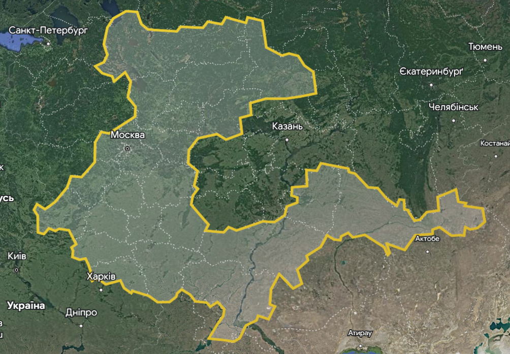 - Південний ФО: частина Волгоградської обл - до Московії.