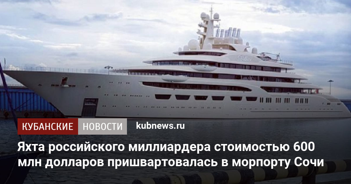 Супер-яхта Усманова за $650 млн вызвала ажиотаж в морпорту Сочи . GLOBAL LOOK PRESS . Одна из самых дорогих яхт в мире бросила якорь в морском порту «Имеретинский» в Сочи . По некоторым данным, Супер-яхта . . .