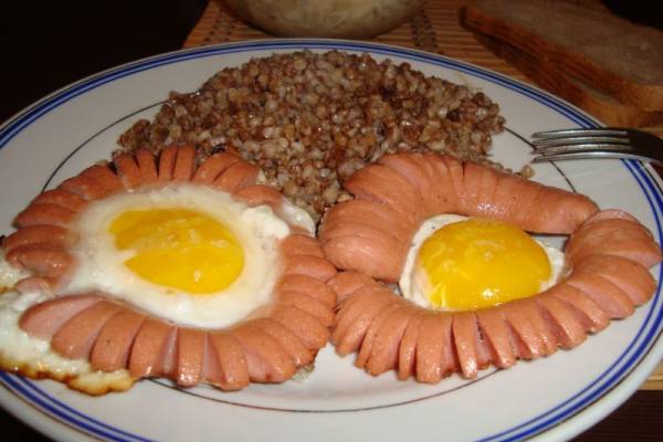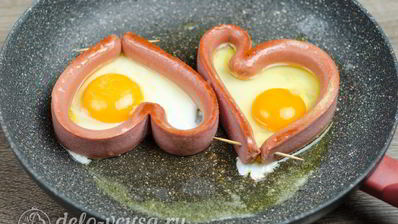 Яичница с сосиской в виде сердца - 8 пошаговых фото в рецепте