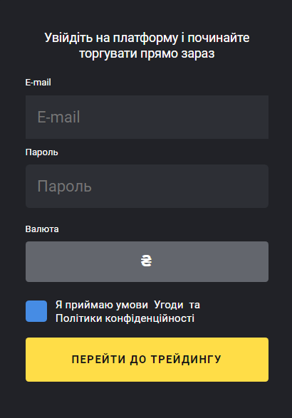 - Реєструєтеся на Стокіті за посиланням https://stockity.id/?a=47104fcea04c&t=0
