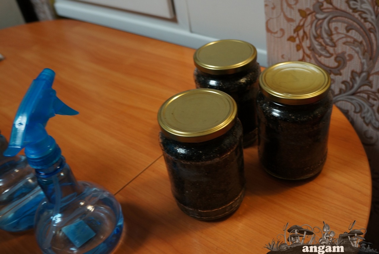 Как всегда стерилизую три 0.7 литровых баночки с покровом (торф+вермикулит+кокос).