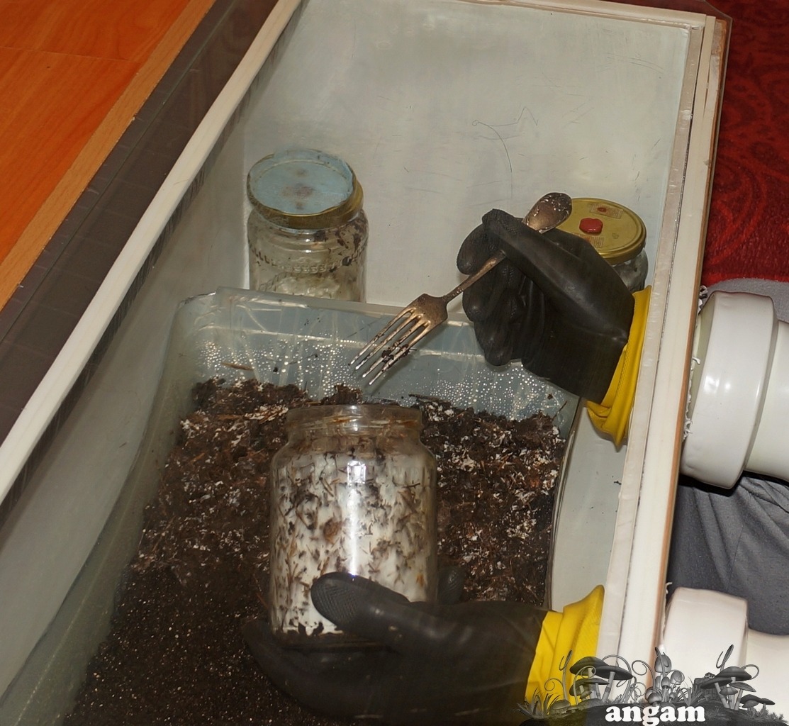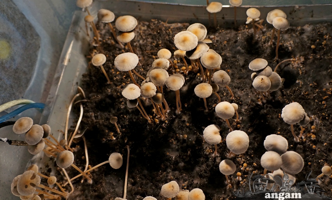 Полеты во сне и наяву продолжаются.Новый гров Panaeolus Jamaica начал 15 числа сего месяца с обросших банок сено-навоза.