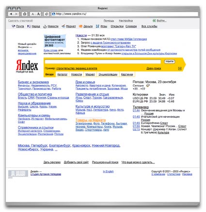www .yandex .ru . 23 сентября была впервые анонсирована поисковая машина Яndex-Web . Чтобы показать, как она работает с большим массивом информации На тот момент Яндекс учитывал морфологию русского языка, расстояние между словами и умел ранжировать документы .