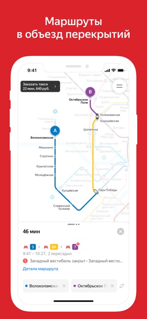 Яндекс .Метро — интерактивная карта метро с расчётом времени и прокладкой маршрутов с учётом данных о закрытии станций и вестибюлей .