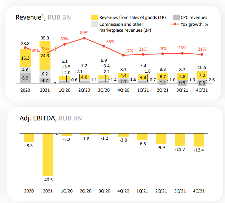 Именно из-за того, что большую часть продаж делают сторонние продавцы, выручка Яндекса здесь составила всего 35,3 млрд ₽. А убыток при этом был 40,5 млрд ₽!