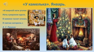 Январь . У камелька . И мирный неги уголок Ночь сумраком одела, В камине гаснет огонек, И свечка нагорела . . . (А . С . Пушкин)