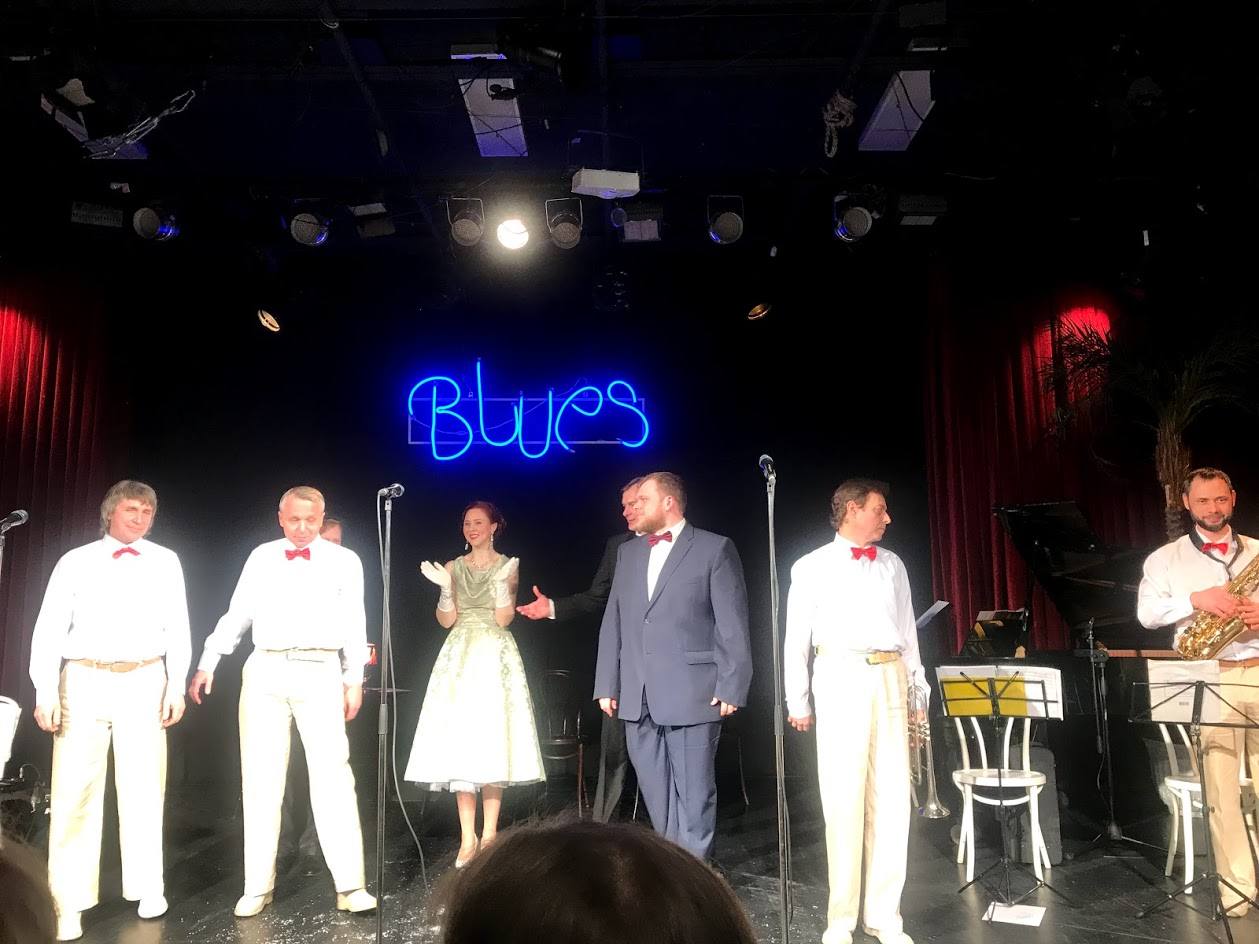 Оркестром "Театр-бэнд" руководит Игорь Есипович (он же играет на трубе, он же музыкальный руководитель театра), восемь музыкантов с удовольствием аккомпанируют трём солистам. С настроением от Tenderly до Besamo Mucho.