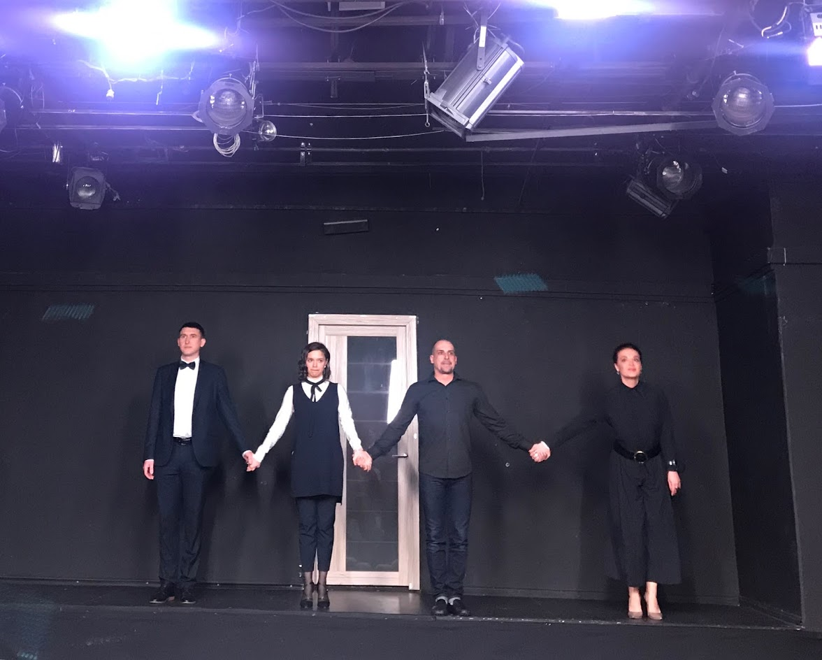В мягких креслах и вокруг них парочка Марта/Джордж играют в свои игры, вовлекая в них, кроме зашедших в гости Хани/Ник и пришедших зрителей. Не зная пьесы (впрочем, зная тоже) ловишься на выходки подвыпившей четы, смеёшься их дурацким шуточкам. Спектакль длинный (2 ч 30 мин) с антрактом и приближённые к реалиям шутки первого акта ожидаемо перерастают в почти_трагедию второго. Чудесным образом не сочувствуешь никому, может, только Нику; впрочем нет, ему тоже нет.