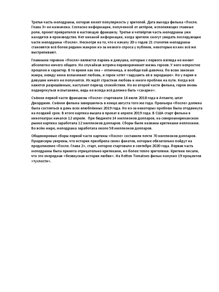 Так, на днях кинокомпания Voltage Pictures опубликовала официальный трейлер фильма «После . Глава 3 » и объявила дату выхода — 2 сентября 2021 .