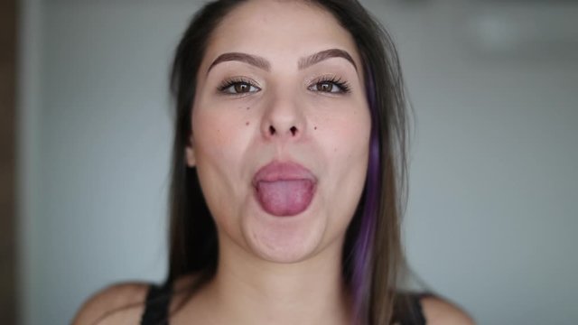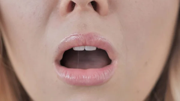 Язык девушки с открытым ртом