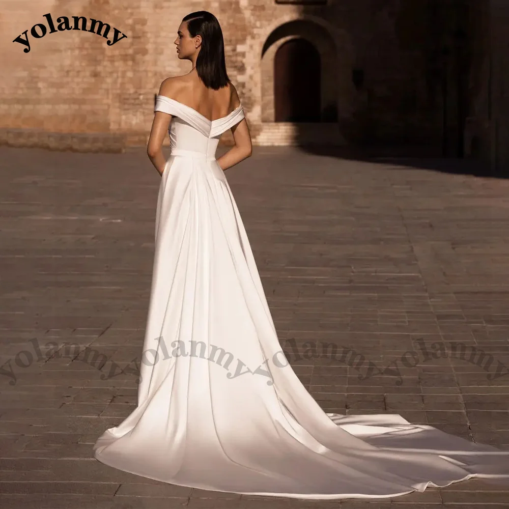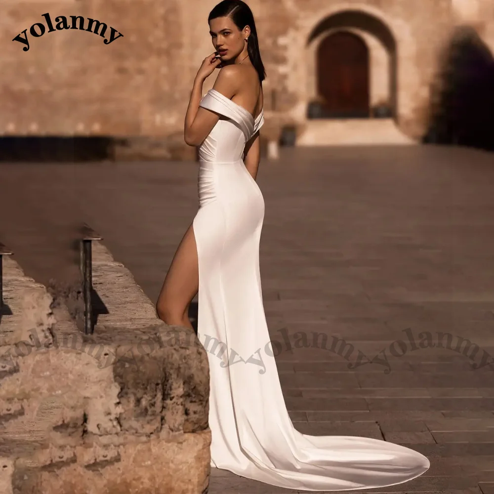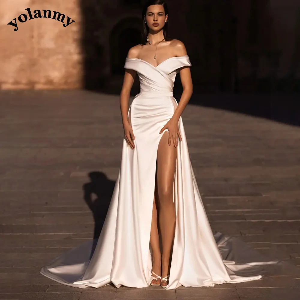 fdaoumehGRHere you can buy YOLANMY Strapless Simple Wedding Dresses For Bride Zipper Satin Off The Shoulder Backless Charming Side Slit Prom Customised with free delivery to your post office.