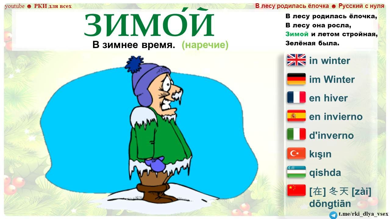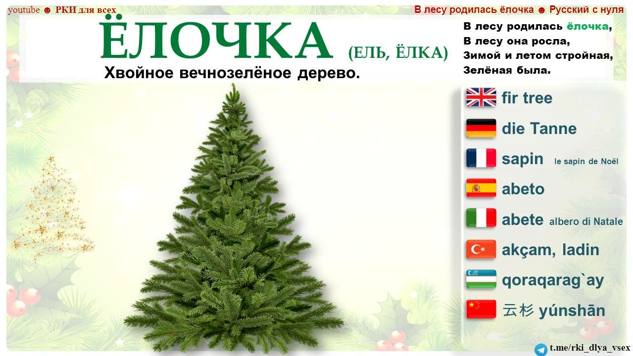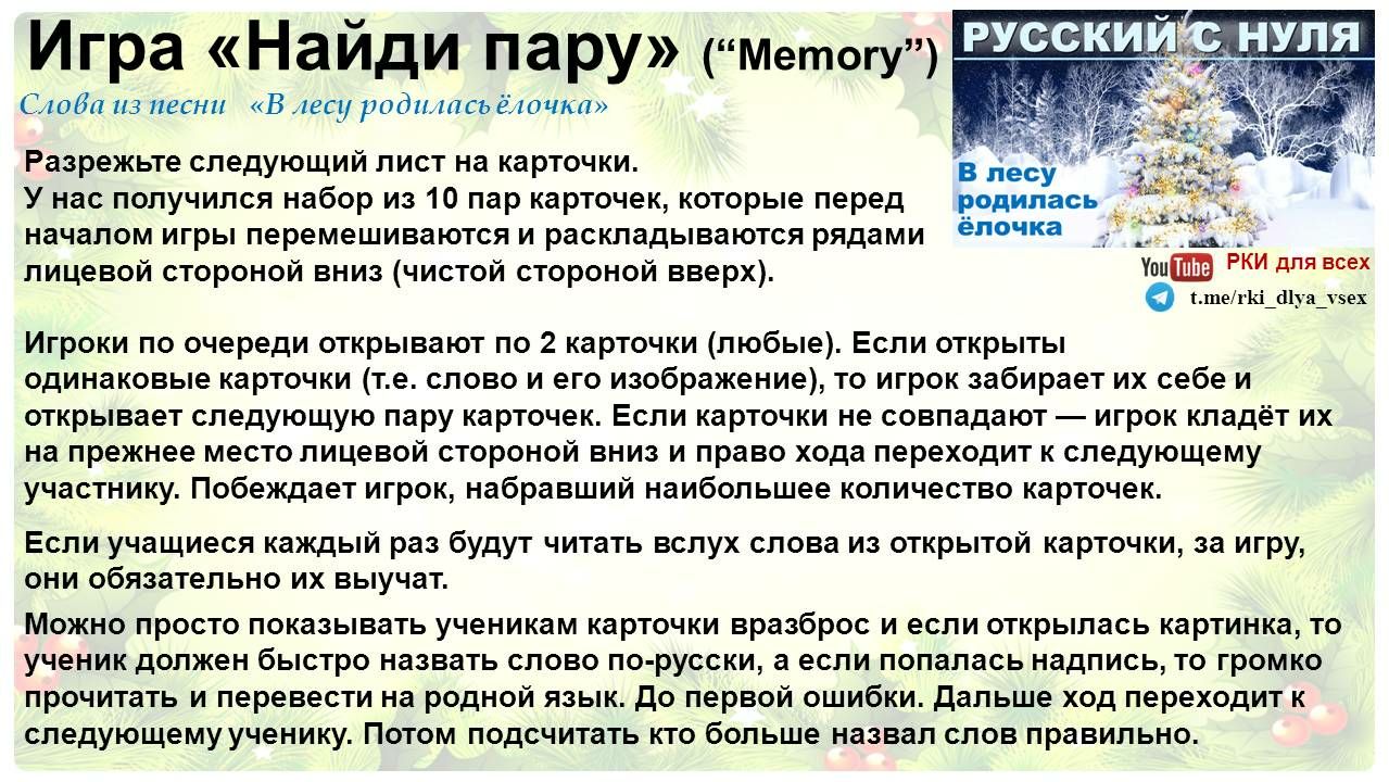 РКИ для всехТелеграм канал https://t.me/rki_dlya_vsex и Ютуб канал "РКИ для всех" https://www.youtube.com/channel/UCGA-o-hGOWYNXTFKWHAaqaA представляют: "В лесу родилась ёлочка" - раздаточные материалы.