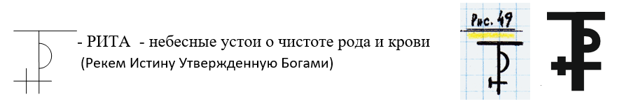 Это мы говорим сейчас Законы Рита. Раньше было просто Рита. А мы используем слово Законы, чтобы всем было понятно. РИТА (рис. 49) – это Небесные устои о Чистоте Рода и Крови. Но мы это пишем аббревиатурой РИТА т.е. Р- рекёмИ – истину Т – утвержденную А – Богами.