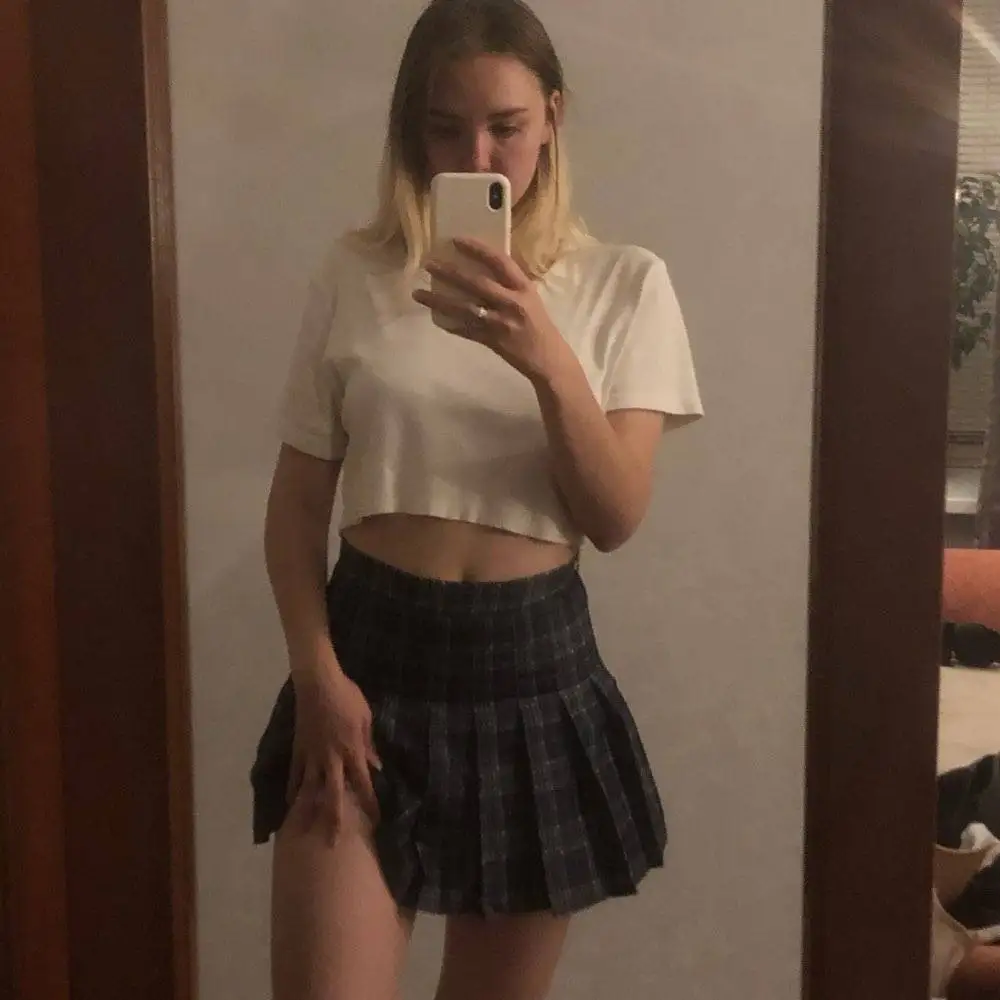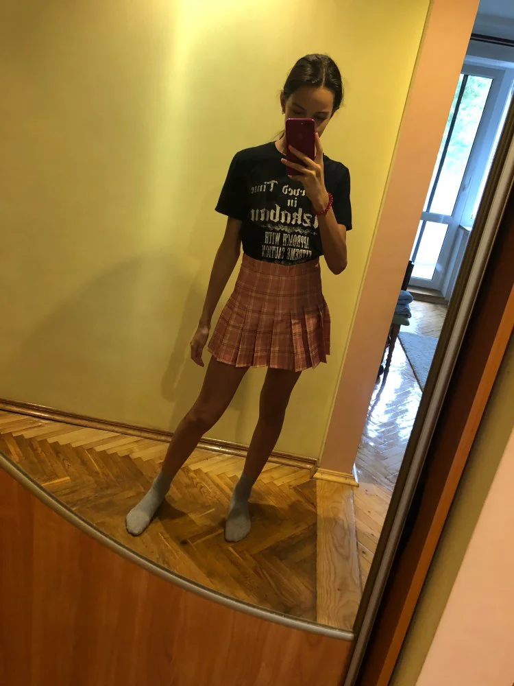 Короткая юбка не прыкрывает прелестную попку этой шалуньи