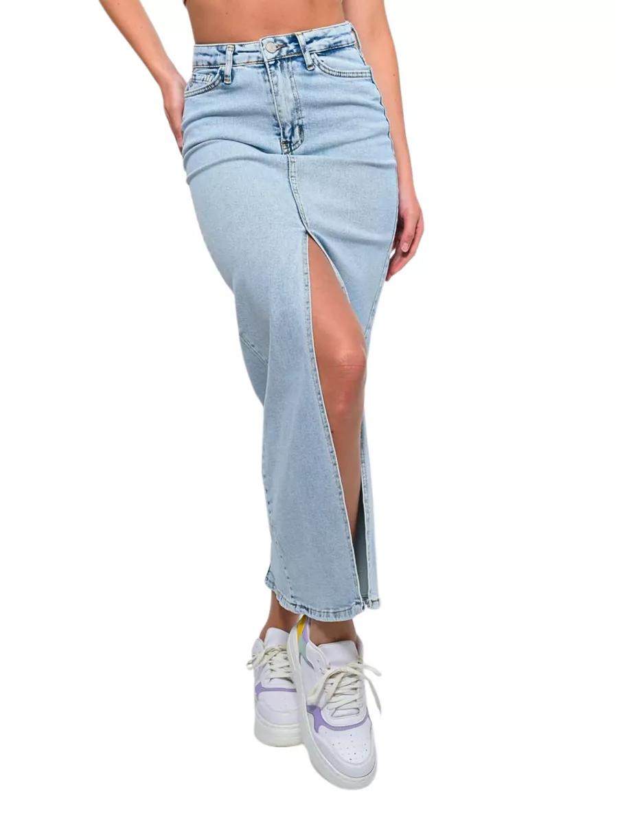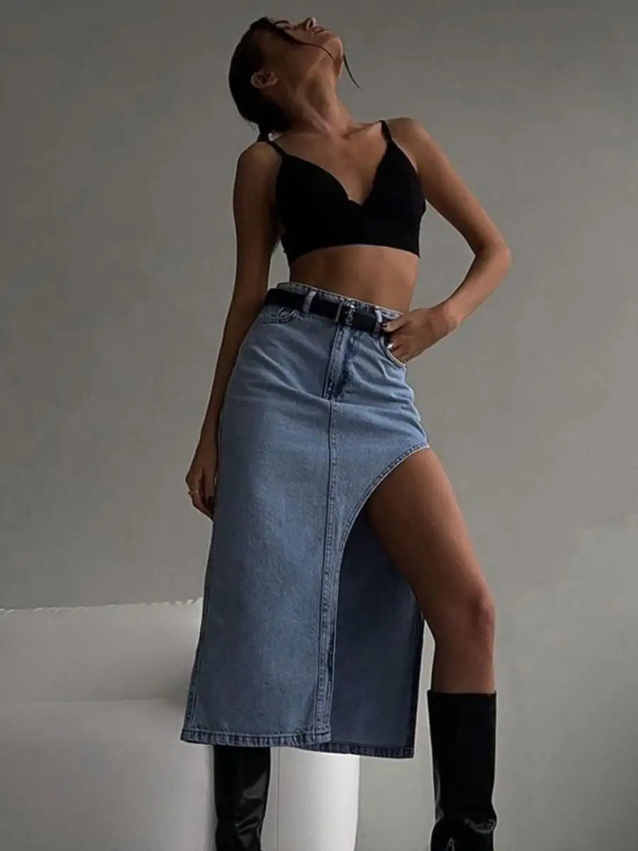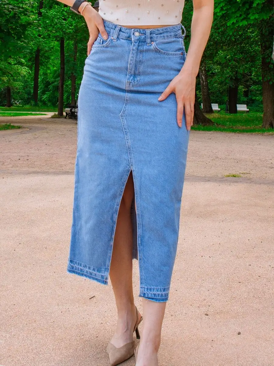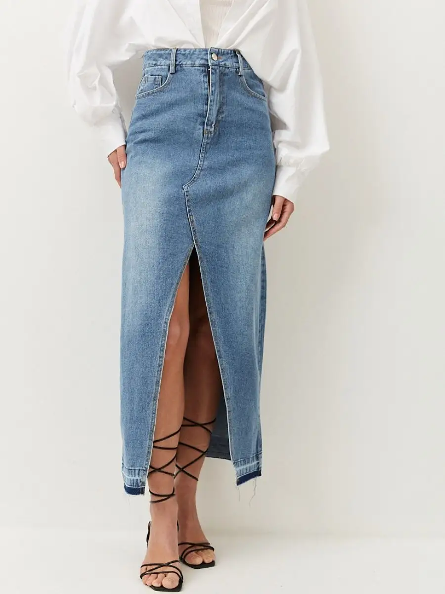 Юбка джинс с разрезом 171 фотографий