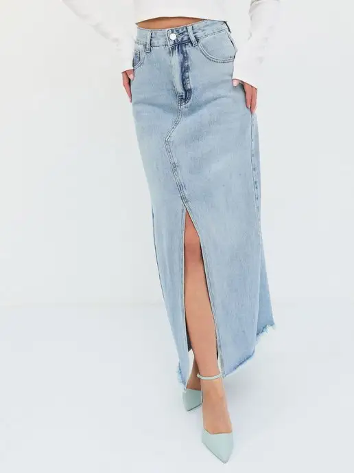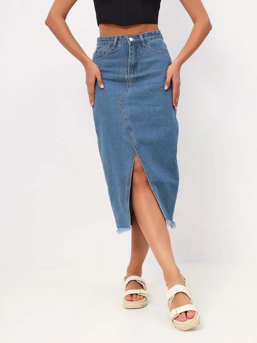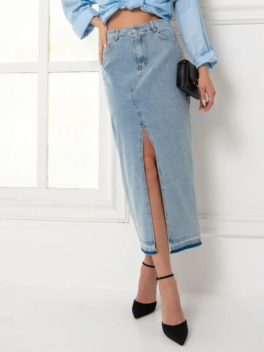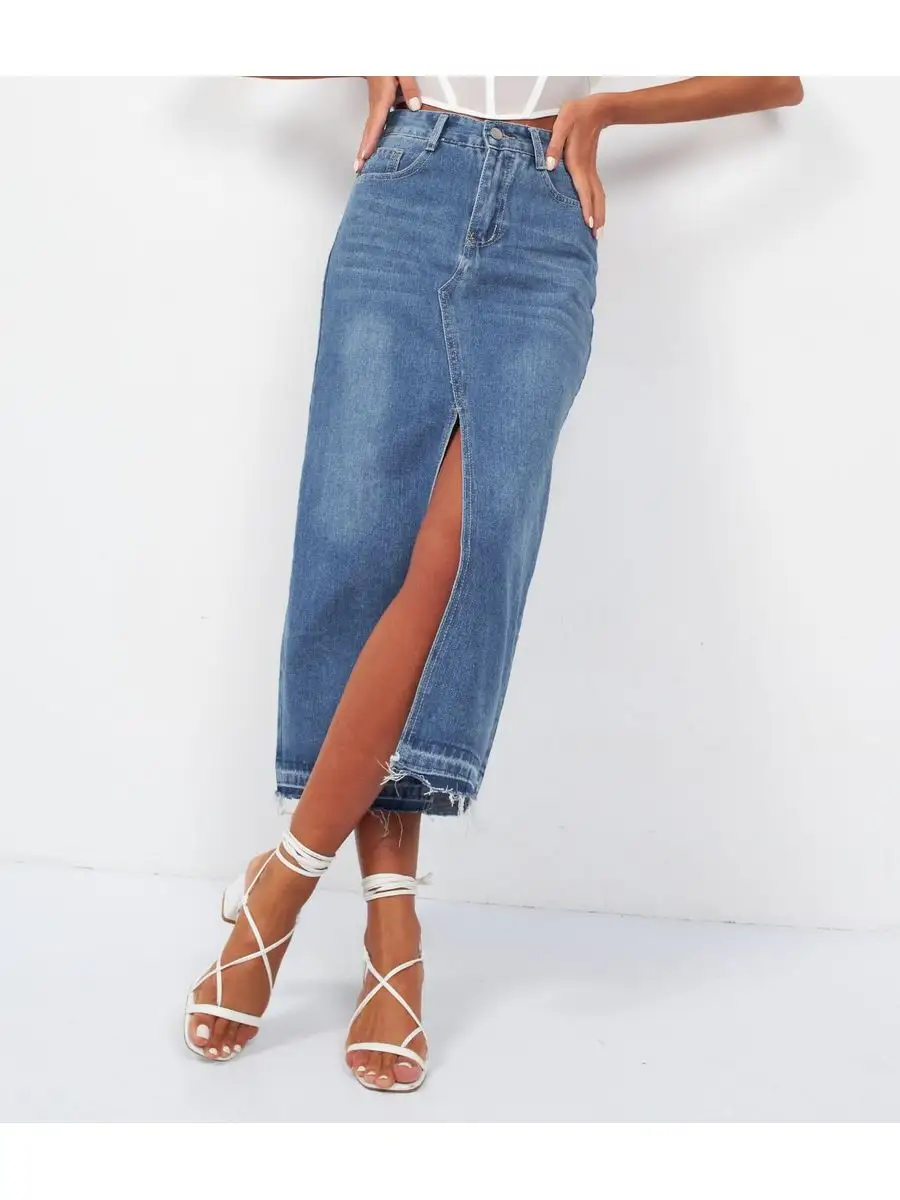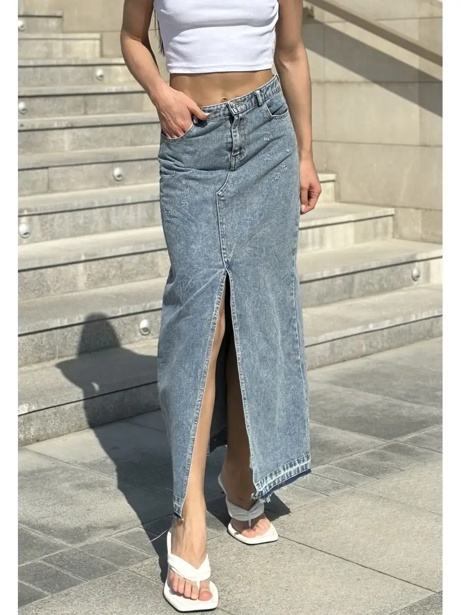 Юбка джинс с разрезом 171 фотографий