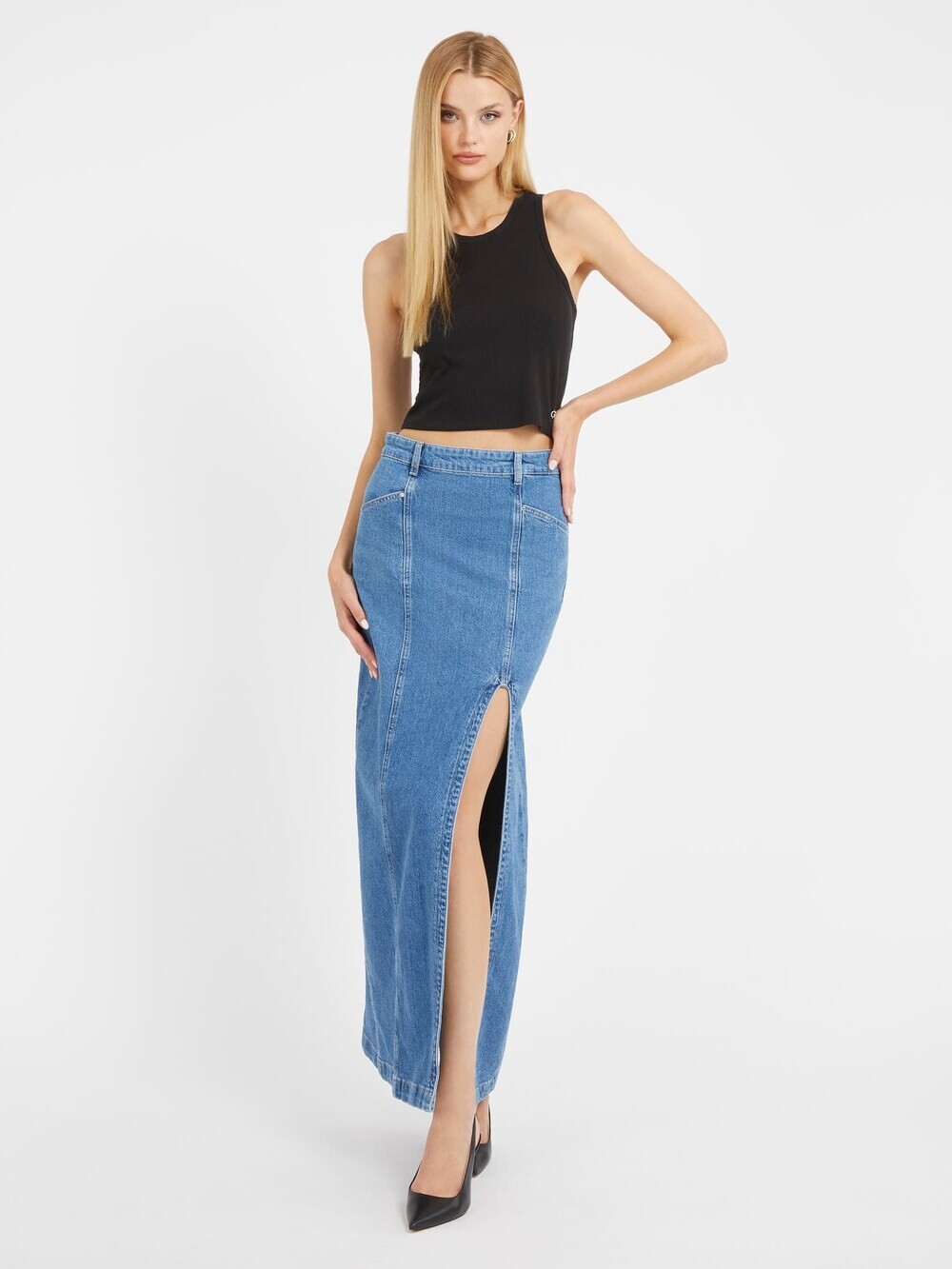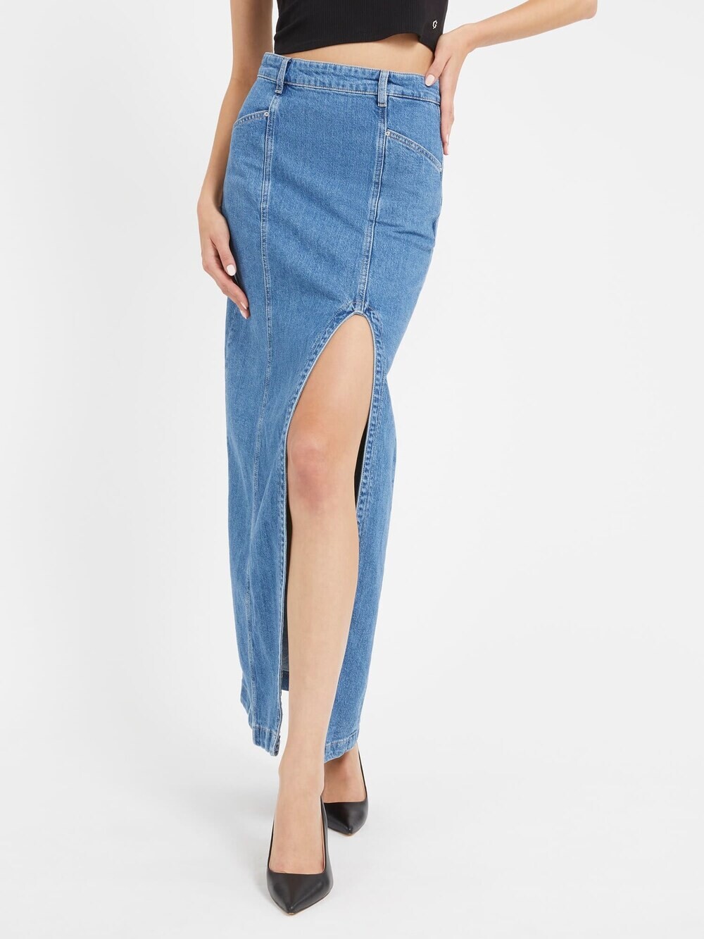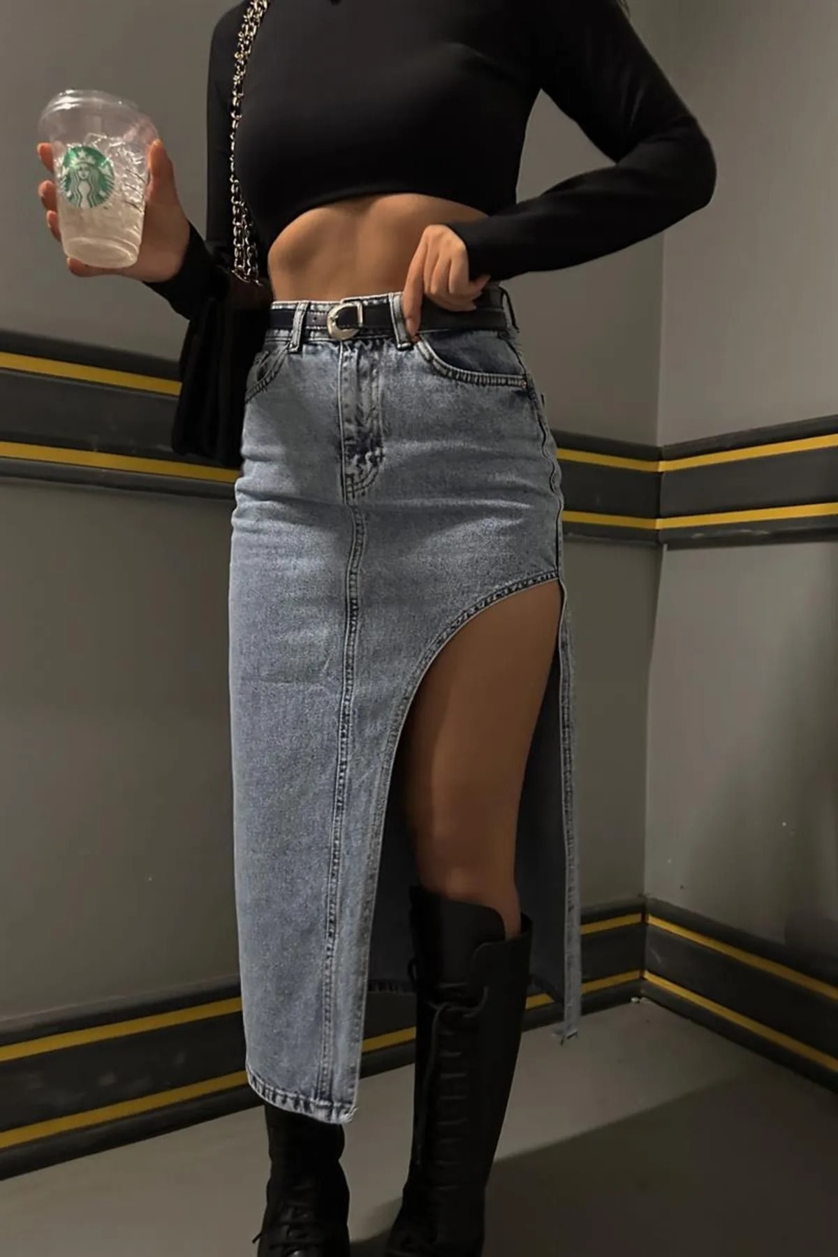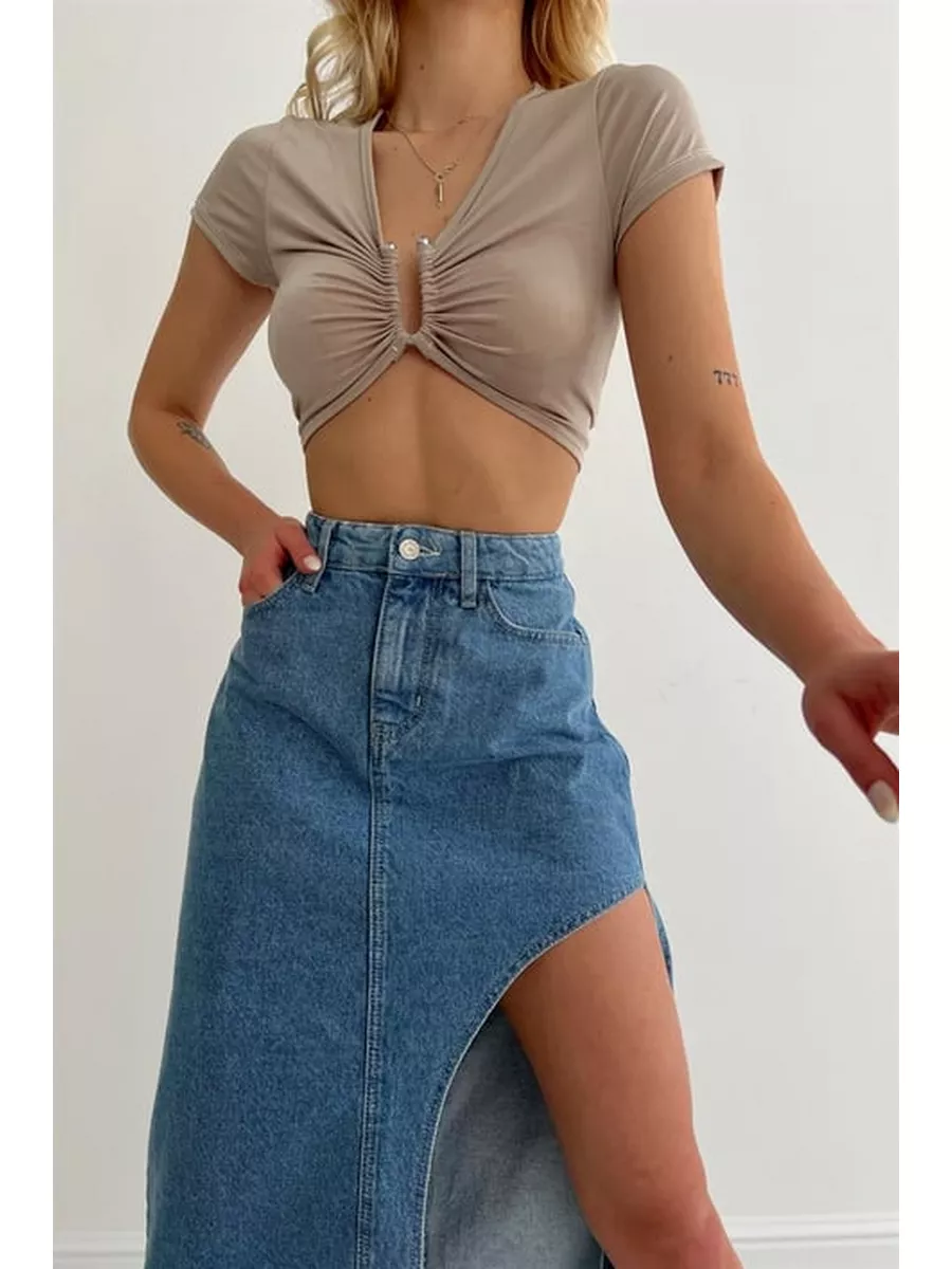 Юбка джинс с разрезом 171 фотографий