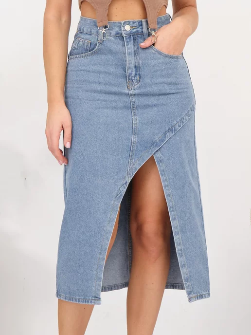 Юбка джинс с разрезом