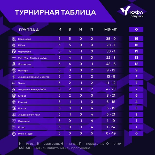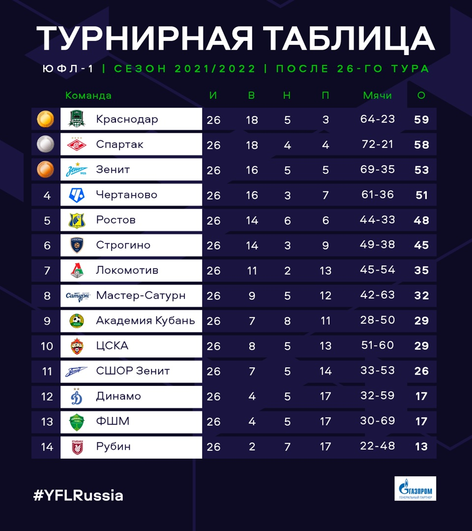 Юфл юг 1 таблица
