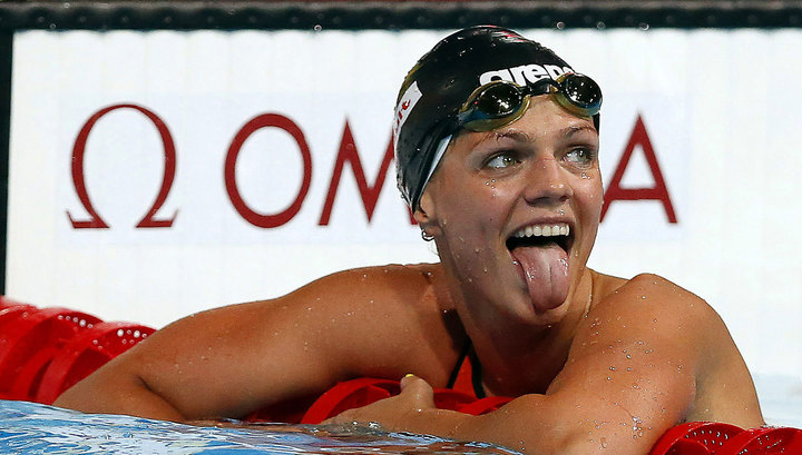 Юлия Ефимова стала первой на дистанции 50 метров брассом . . .