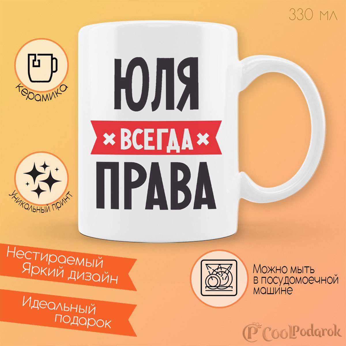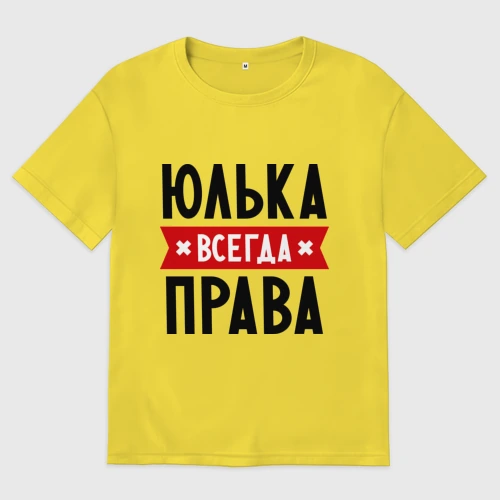 Юля всегда права - именные майки на заказ в интернет-магазине прикольных подарков c русскими надписями в США . Майки с именами это здорово и оригинально!