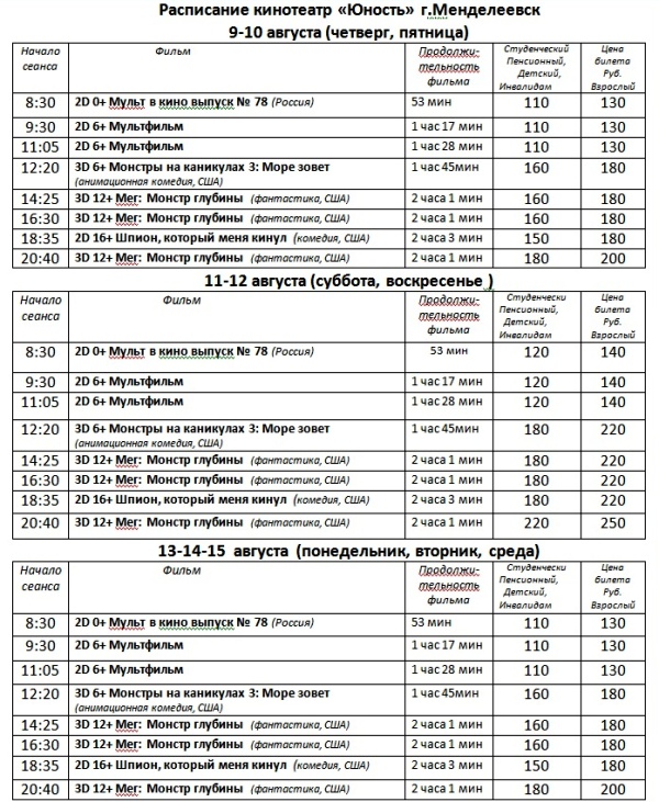 Юность менделеевск