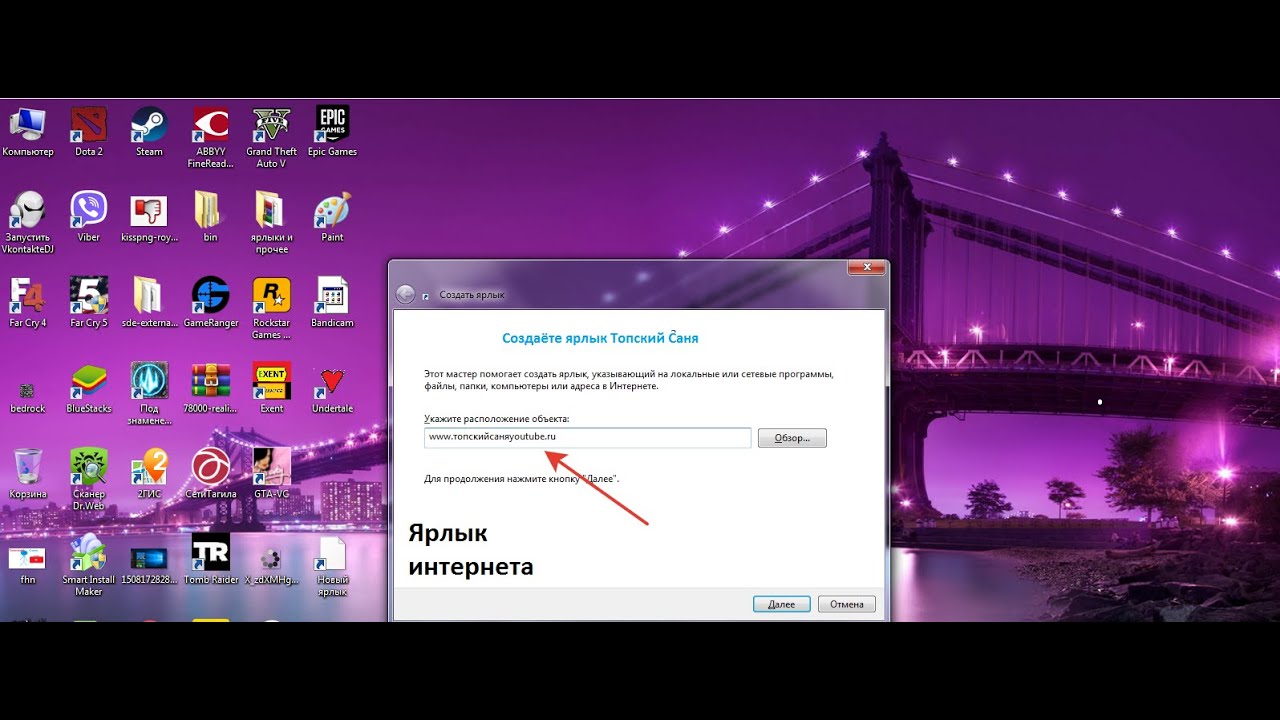 Ютуб создать ярлык