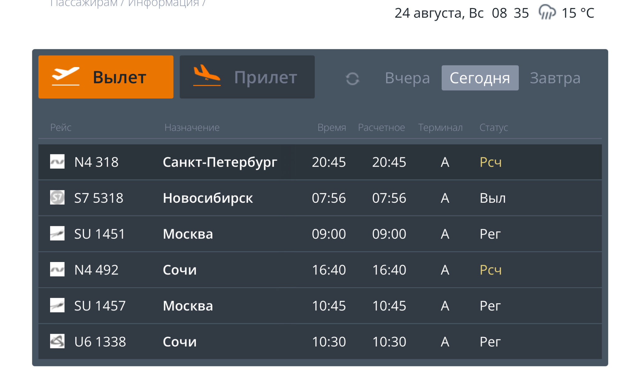 Южный ветер табло вылета 108 фото