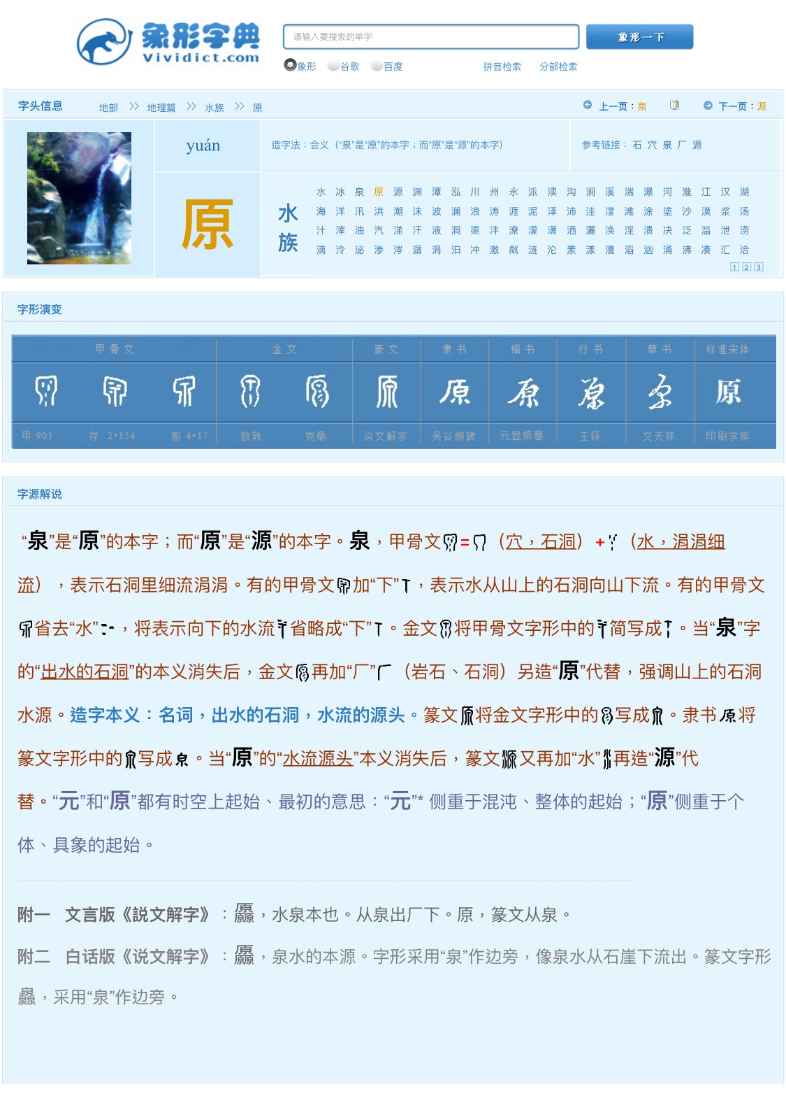 然後水,水是什麼?水就是原。原這字,第一個意思就是原始。初始狀態。水泉本也。我給大家講過兩句詩,悟道詩,我來問道無餘說,雲在青天水在瓶。就是上帝為什麼第一天創造了光啊。第二天,創造了空氣,把水分開了,分成了天上的水,天上的水就是雲。雲就是水瓶裡邊存水的。然後地上的水,就是江河湖泊,山裡的泉水。水泉,原。天上的水,地上的水都是原的意思。這倆字合在一起的時候,就是上帝的記號。上帝給所有人,地上的活物立約的記號,實現天下大同的那個說法。