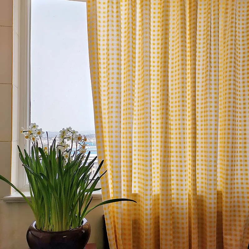 "Yaapeet Buffalo Plaid Semi Sheer Curtains Light Filtering Refresh Yellow&White Voile Checkered Curtain for Window Treatments" * Buy Now Just For 21$