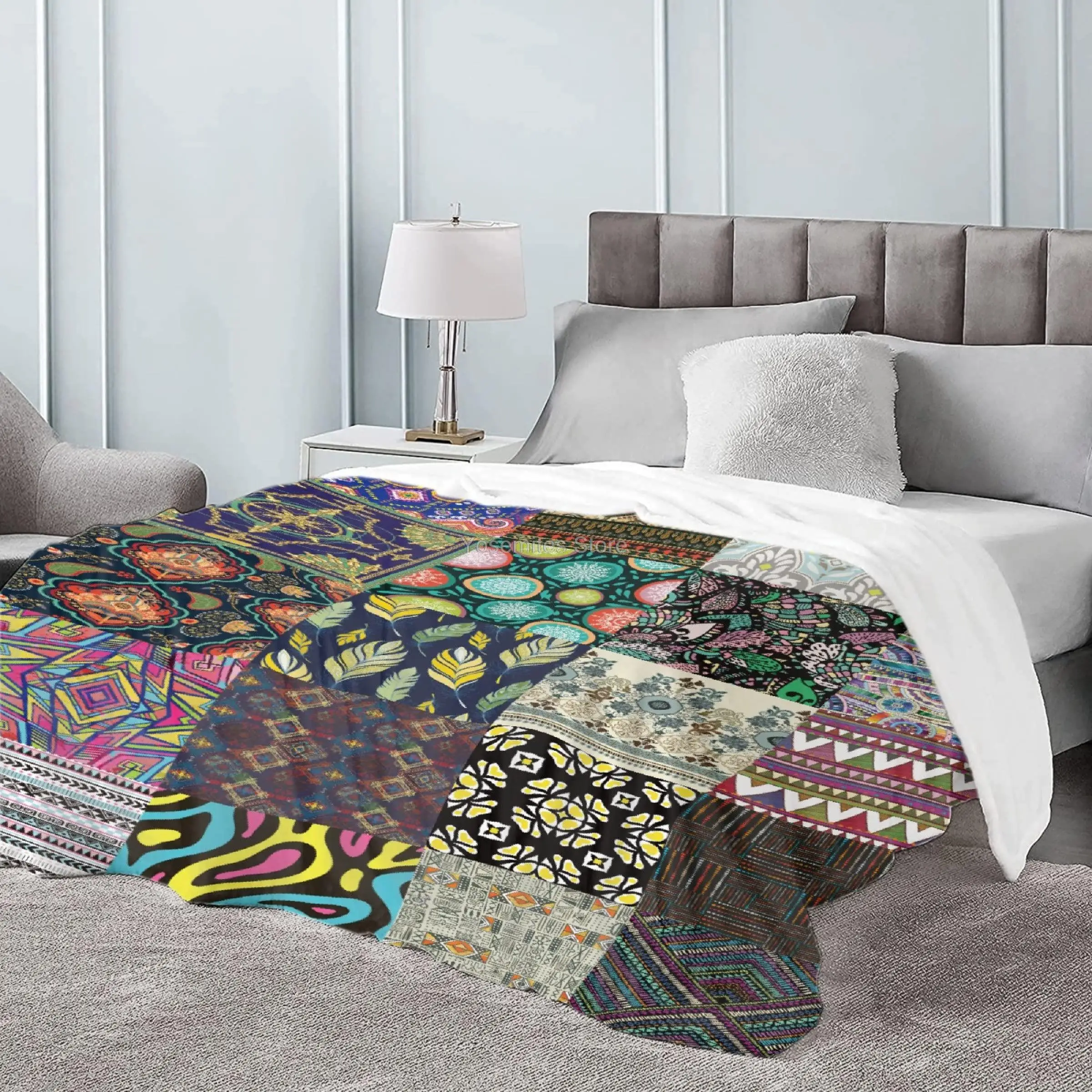 «Yaoola Bohemian Jigsaw Flannel Blanket, All Season Soft Cozy Plush Bed Throw fit Bedroom Living Room Sofa Couch Bedding Office C» по лучшей цене на рынке! Всего за 18$ (1710рублей)