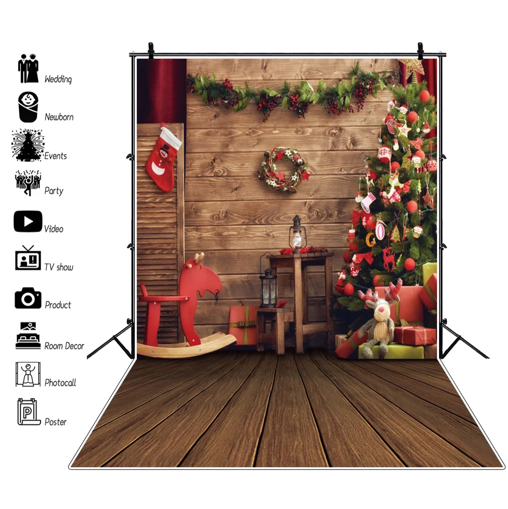 "Yeele Christmas Backdrop Props Photocall Wood Board Tree Gift Trojan Horse Baby Photography Background Photographic Photo Studio" * Buy Now Just For 8$
