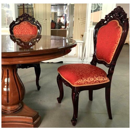 Yemek sandalyesi Dia Rosa mogano 505x550x1055 mm. Klasik oturma odasının içi stil, incelik, uyum ve lüksün birleşimidir. Klasik bir tasarım seçerek kusursuz zevki ve estetiği vurgular, aynı zamanda oturma odasında rahat ve konforlu bir atmosfer yaratırsınız. Zengin kaplamalara sahip lüks mobilyalar ve çok sayıda muhteşem dekoratif unsur, klasik tarzın temel farklılıklarıdır.