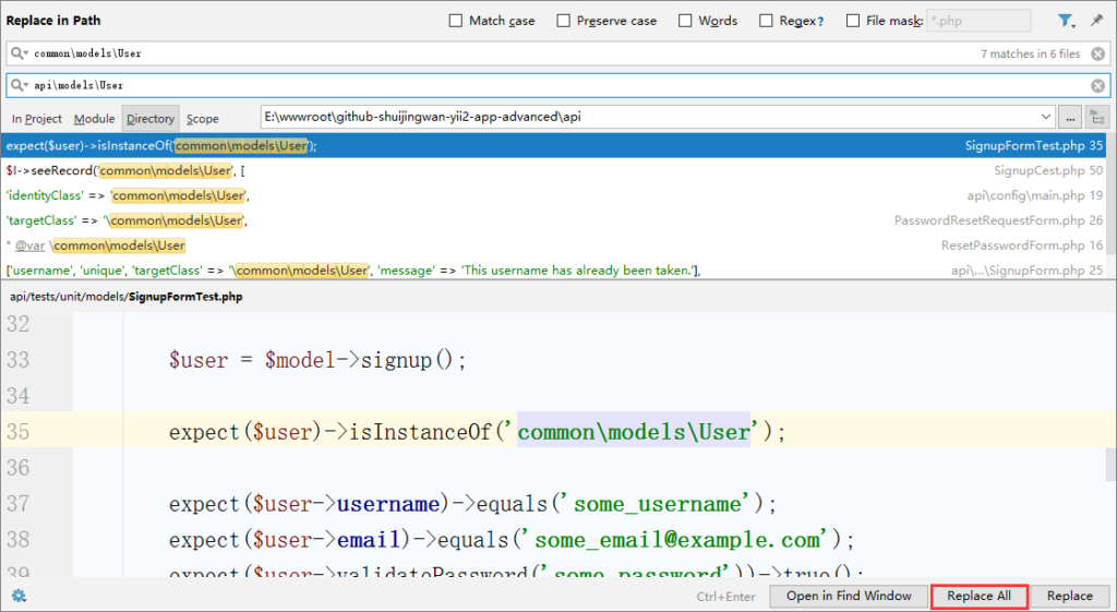 Yii2 Private Function