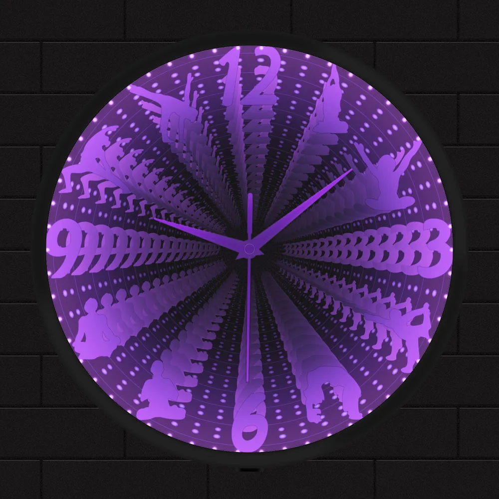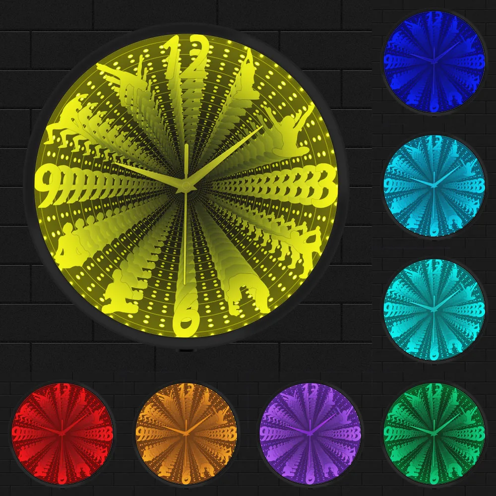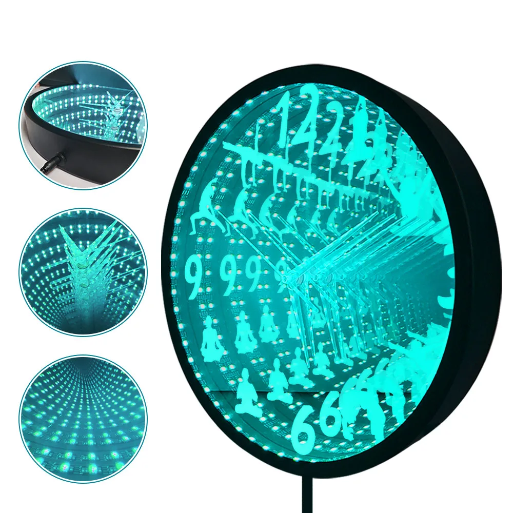Yoga Design Silent Wall Clock With LED Infinity Mirror Vortex Tunnel Interstellar Mirror Clock Glow In Dark For Meditation Room - Купить с бесплатной доставкой