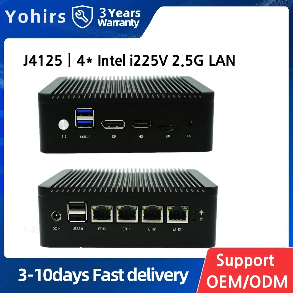 Yohirs Fanless Mini PC J4125 N4100 4* 2.5G LAN Win10 VPN PfSense Firewall Appliance I225 Nics Router Server ESXI Barebone - Купить с бесплатной доставкой