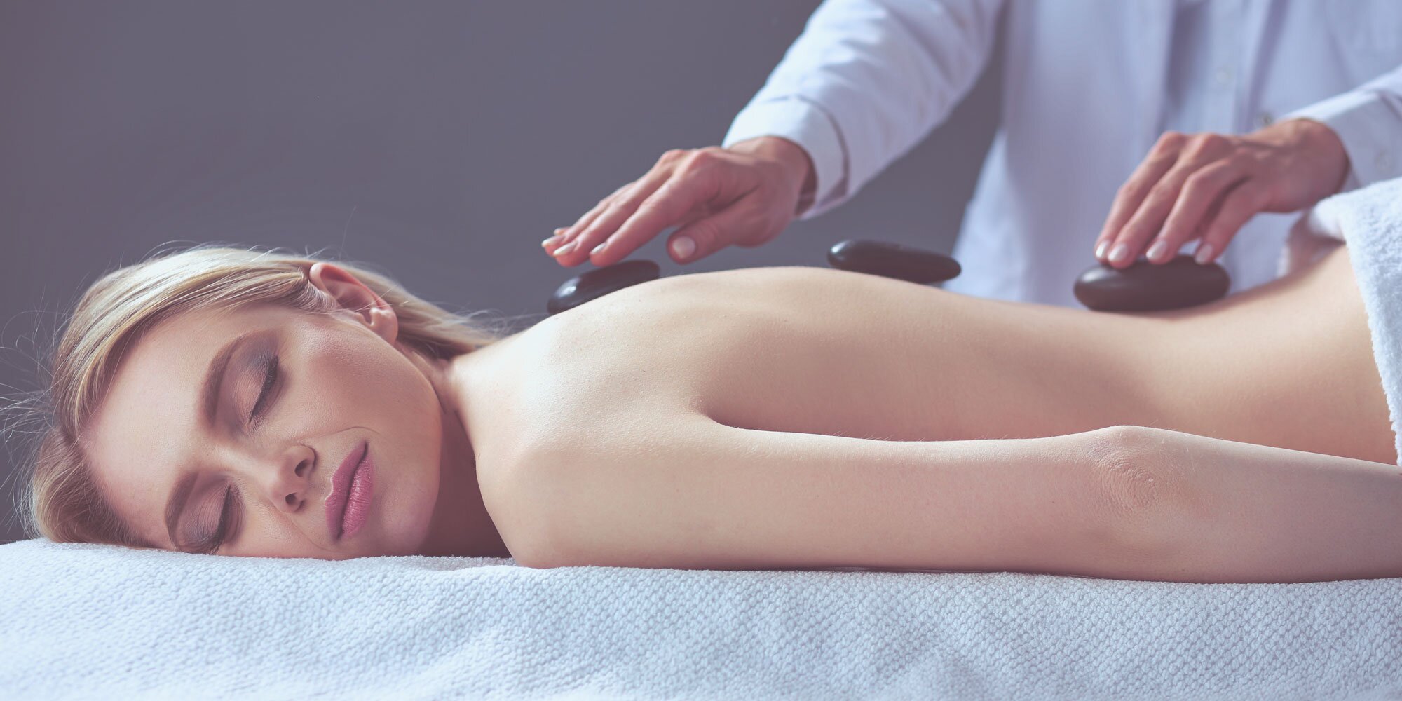 Young Female Enjoys Finger Poking on Massage Table