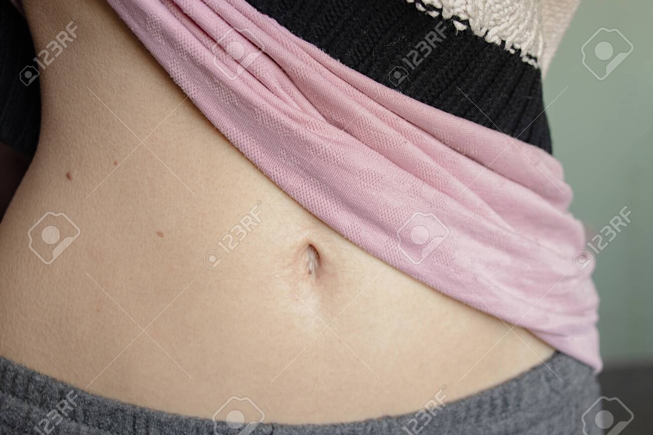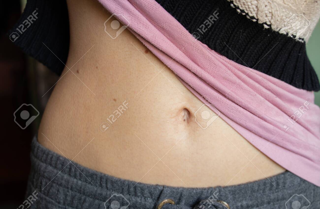 Belly Of A Young Girl With A Belly Button Closeup At Home . . .